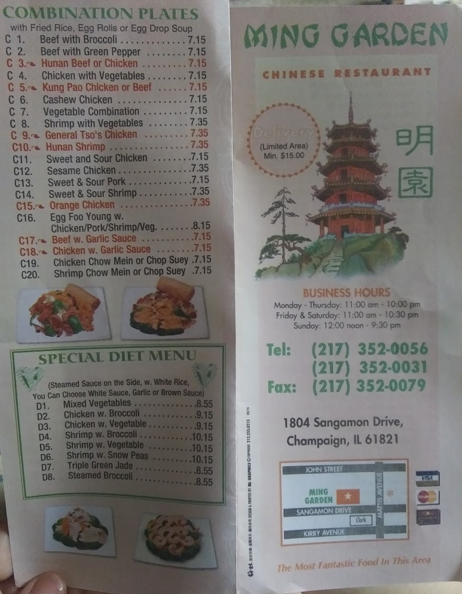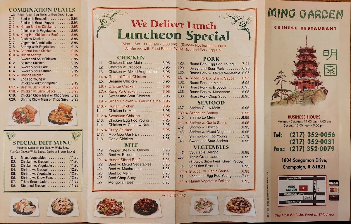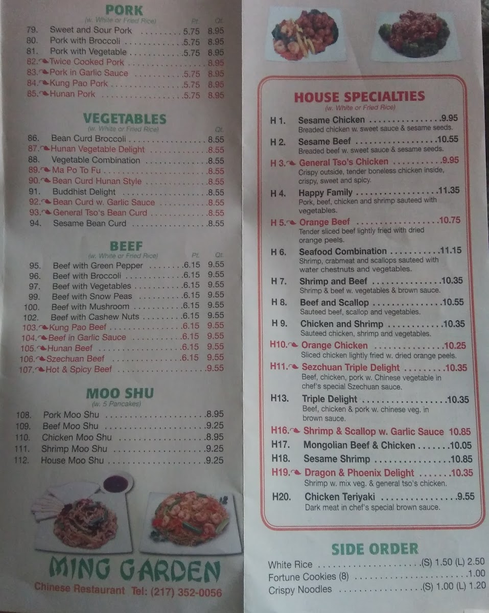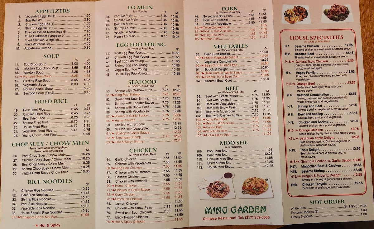 The menu at Ming Garden offers a straightforward, approachable selection of classic Chinese dishes suited for casual meals any time of day. You’ll find comforting plates like Chicken Chop Suey Combination and the familiar flavors of General TSO's Chicken and Orange Chicken providing satisfying options for lunch, dinner, or a relaxed takeout night.